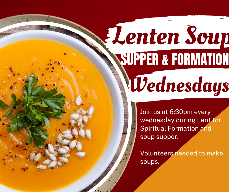 Lenten Reflection & Soup Supper, Wednesdays @ 6:30pm Join us every Wednesday at 6:30pm for our Evensong, followed by Lenten Reflection and soup supper in Guild Hall. We will be...