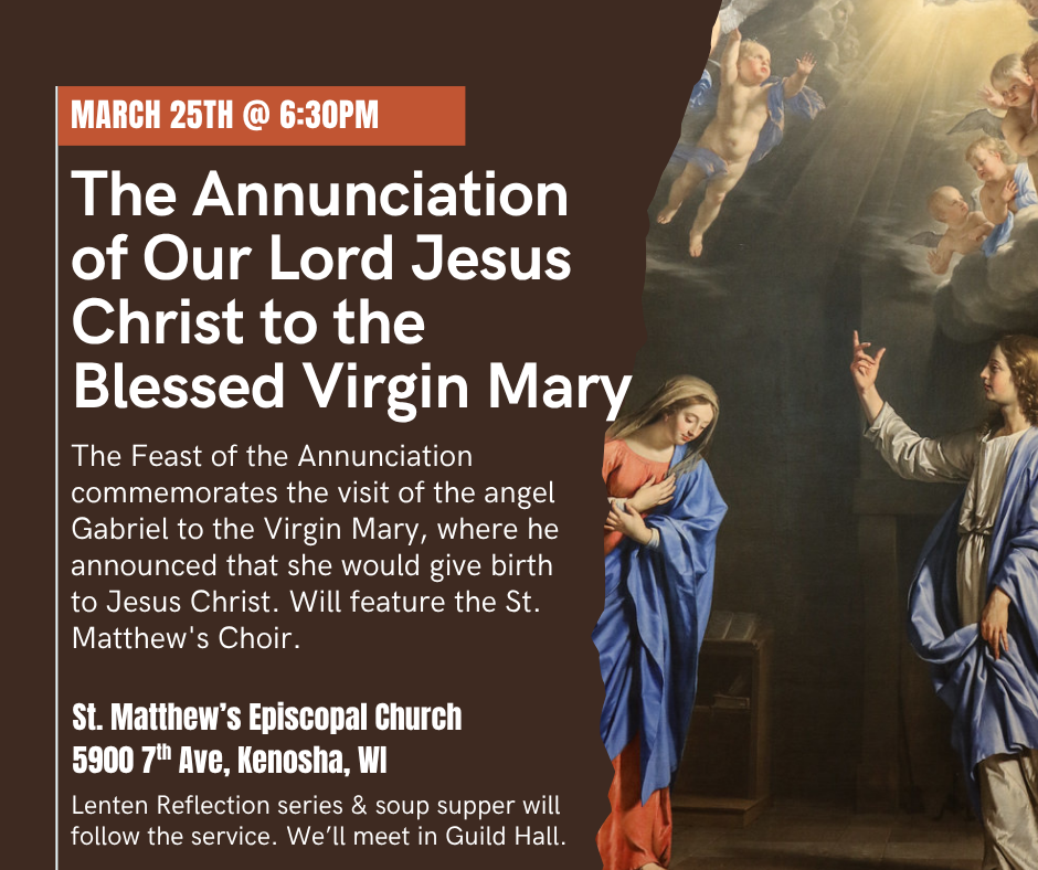 The Feast of the Annunciation commemorates the visit of the angel Gabriel to the Virgin Mary, where he announced that she would give birth to Jesus Christ.This special service replaces... |
